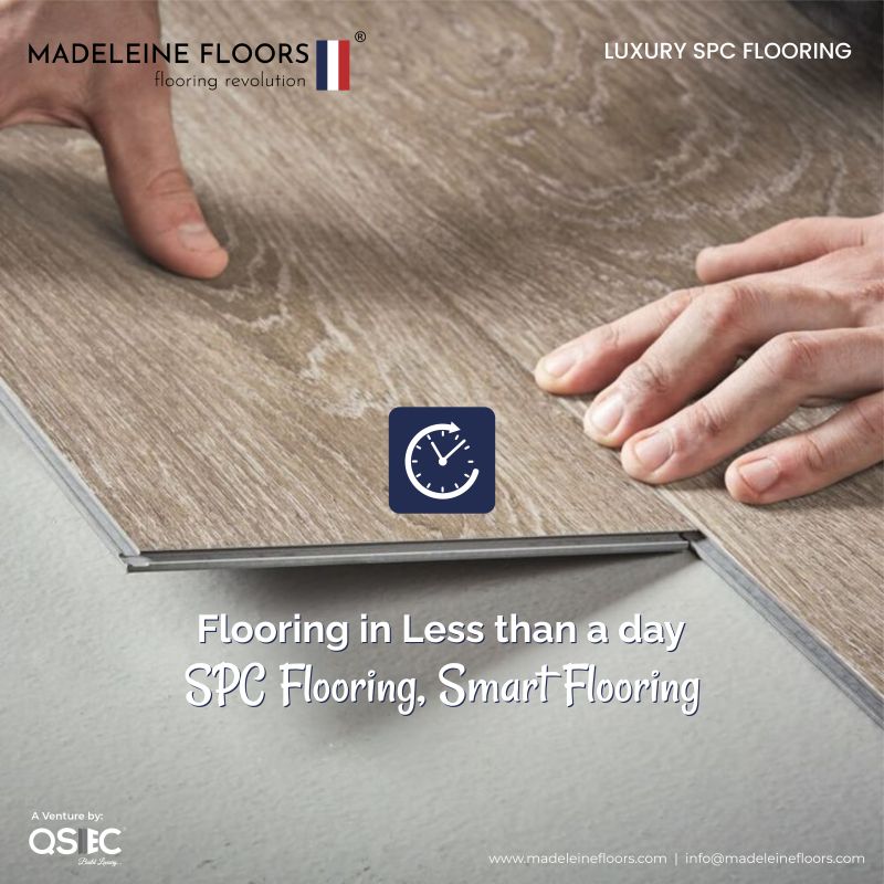 Transform your living spaces with SPC Flooring, the innovative solution for a swift and hassle-free makeover. This cutting-edge Stone Polymer Composite flooring offers the authentic beauty of real wood with the unyielding strength of stone. Boasting a seamless interlocking installation, SPC flooring ensures 100% waterproof and fireproof protection, making it an ideal choice for any home or workspace. Available in thicknesses ranging from 3mm to 7mm, this durable option starts at just 130/- per square foot. Outshine traditional laminated wooden flooring with SPC's enhanced durability, resistance to water and termites, and unbreakable strength, redefining modern flooring standards. #SpcFlooring #StonePolymerComposite #FlooringDeralerVadodara #SpcDealerInVadodara #SpcFloorVadodara #WoodenFloorings